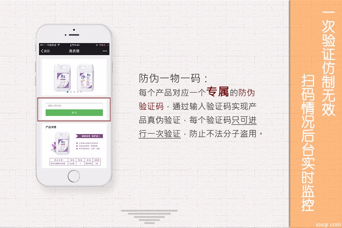具有产品防伪验证功能和营销功能的二维码。通常打印、印刷、喷绘在产品包装上或展示在产品宣传册上使用。您可以通过“扫一扫”体验实际效果。