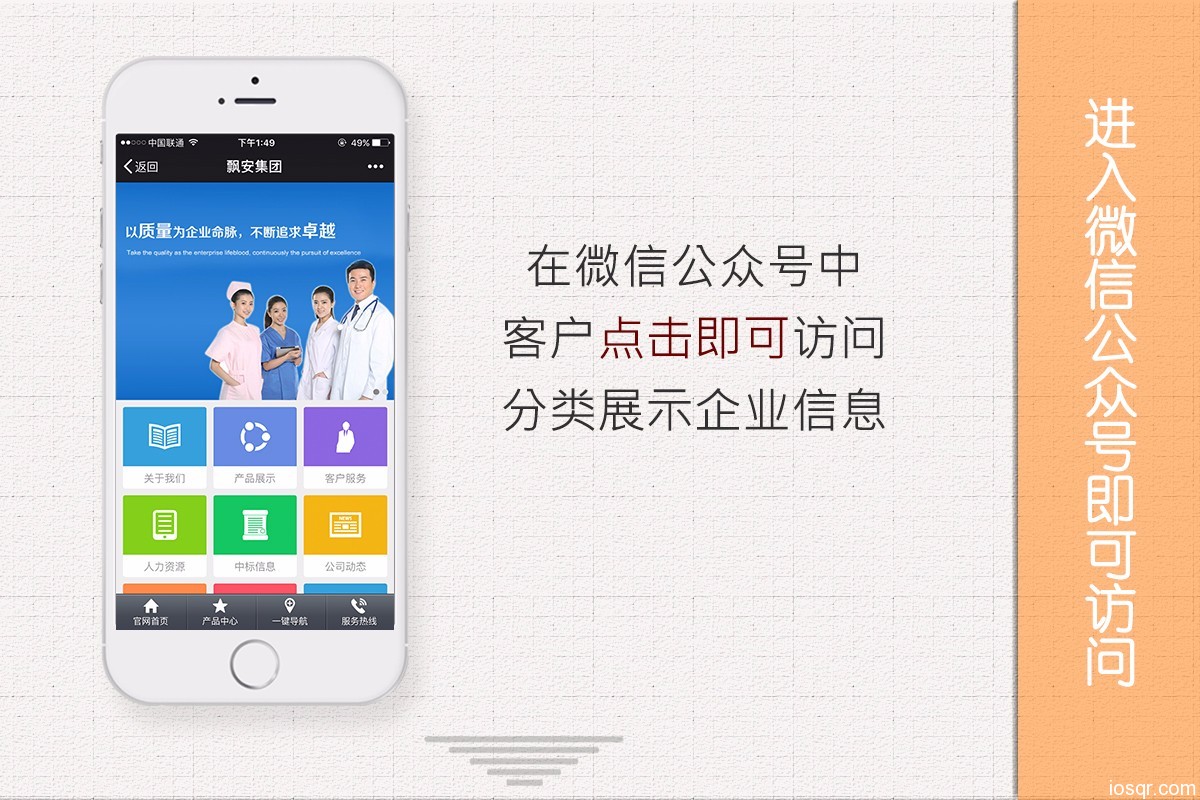 企业微官网是专门为企业展示信息的二维码,基于微信公众号开发。通常打印、印刷、喷绘在产品包装上或展示在产品宣传册上使用。您可以通过“扫一扫”体验实际效果。